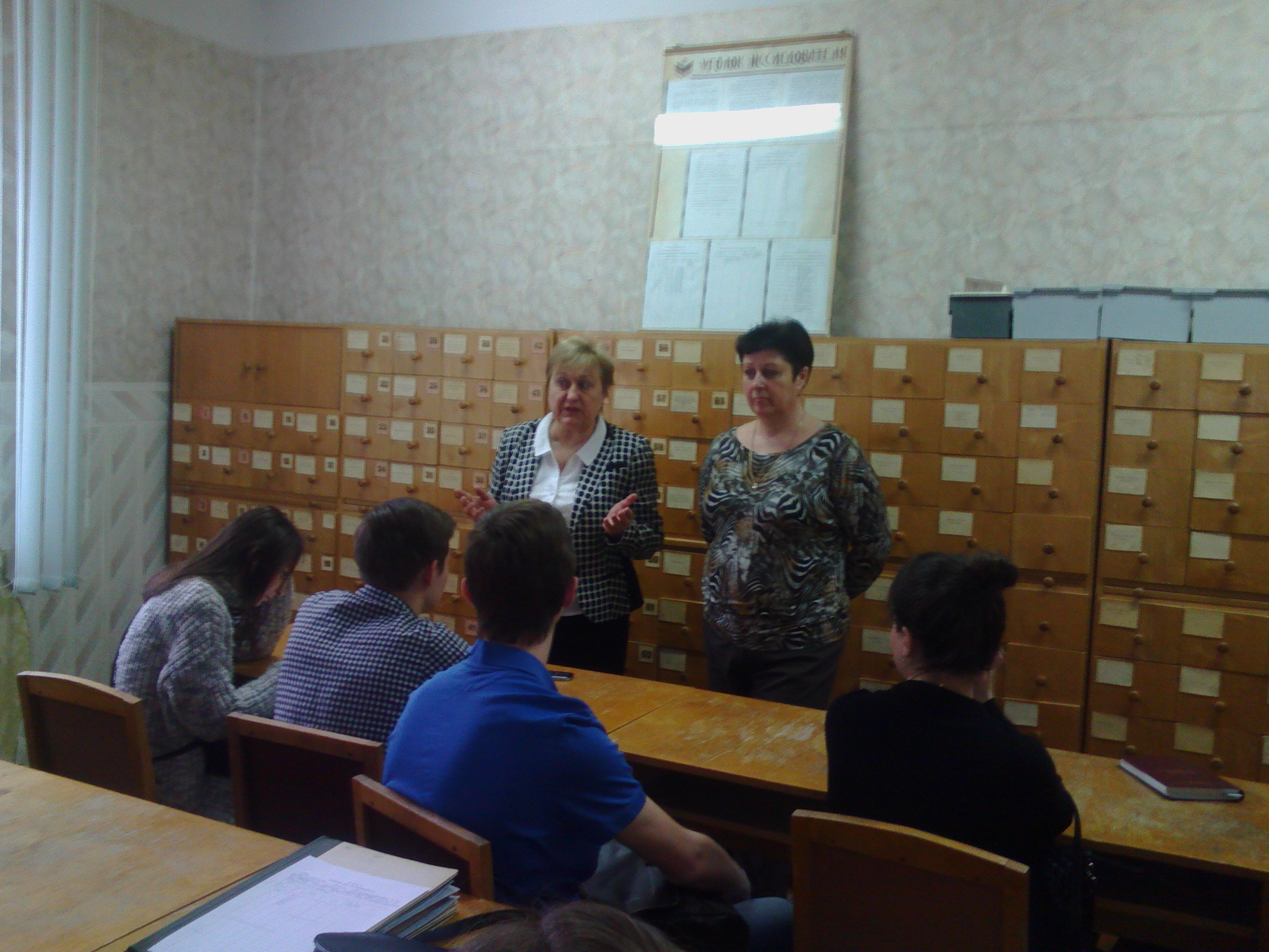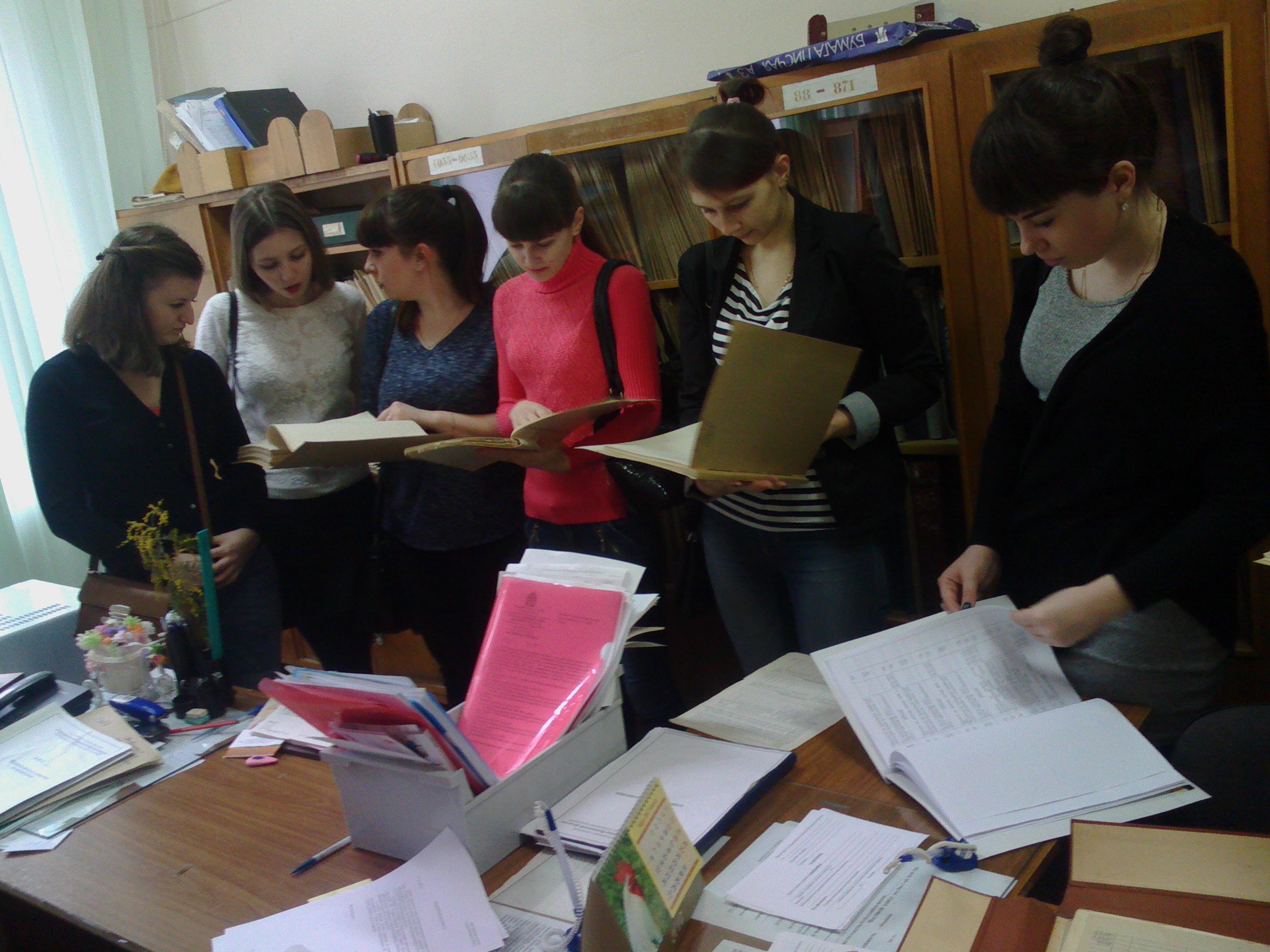 17 марта 2017 г. доцент кафедры ИнОУП Шокорова Н.Н. совместно с начальником отдела государственного архива Пензенской области Вовкотруб О.В. провели занятие по дисциплине «Архив организаций» у студентов группы 13ВД1 образовательного направления 46.02.03 «Документоведение и архивоведение». Занятие прошло в форме экскурсии и тренинга на базе государственного архива Пензенской области. Тема занятия - «Учет документов в архиве организации».