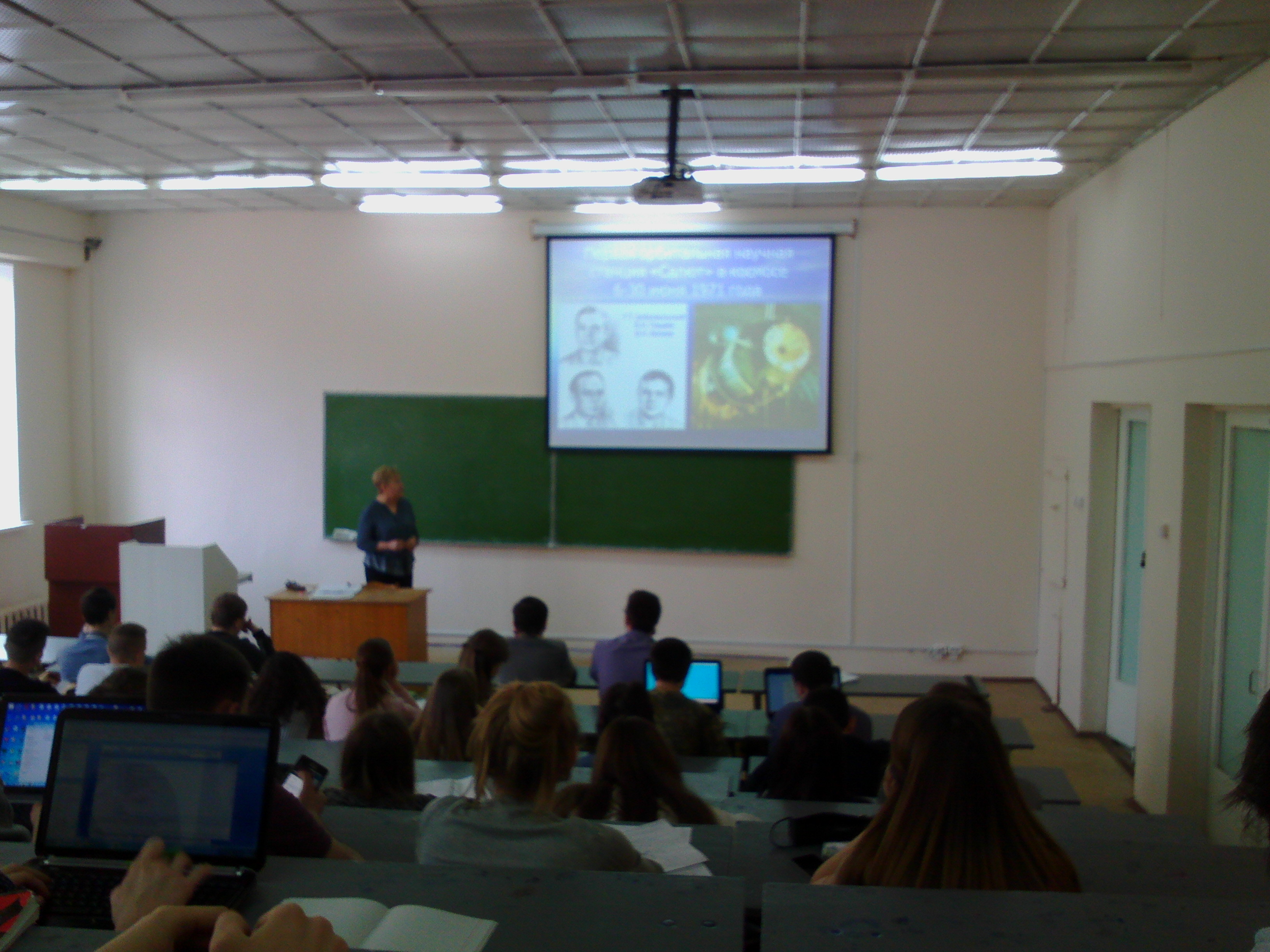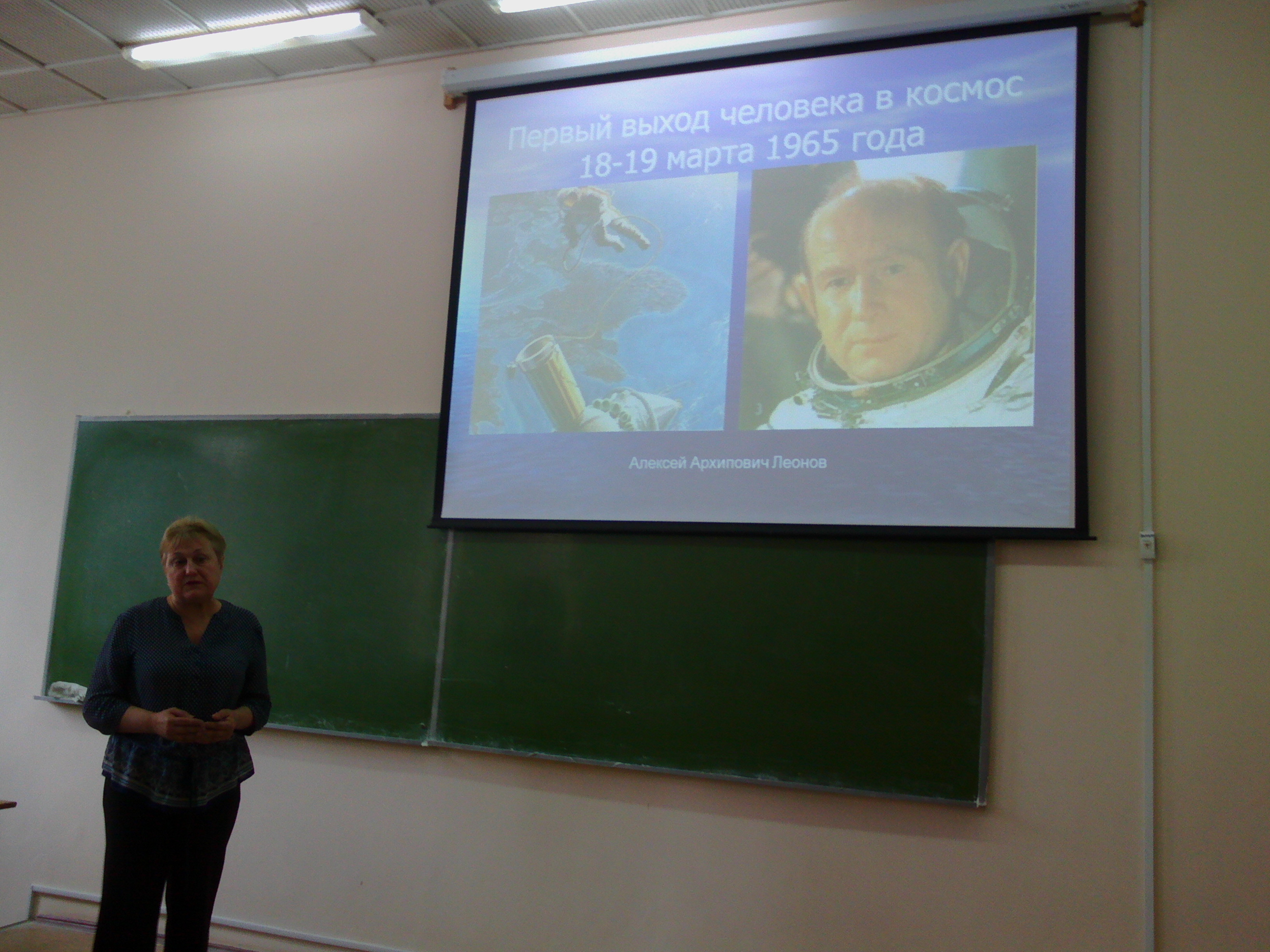 12 марта 2017 г. преподаватели кафедры ИнОУП на занятиях делали сообщения, посвященные Дню космонавтики. Доцент кафедры ИнОУП Шокорова Н.Н. подготовила сообщение студентам групп 16вэ1, 16ви1, 16ви2, 16вп1 в виде презентации. Было отмечено, что в нашем вузе учился космонавт Виктор Иванович Пацаев, осваивавший первую в мире космическую станцию; неоднократно в наш вуз приезжали космонавты и, в частности, Алексей Архипович Леонов – человек, впервые шагнувший в космос.