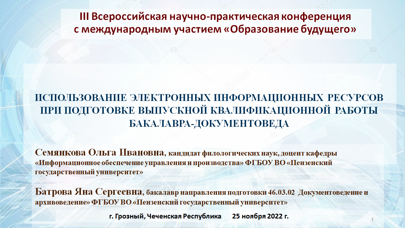 информационных ресурсов при подготовке ВКР бакалавра», подготовленное в
