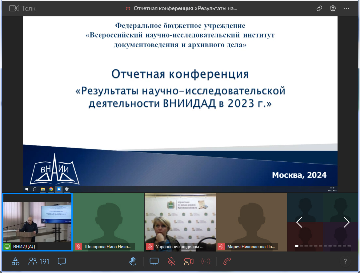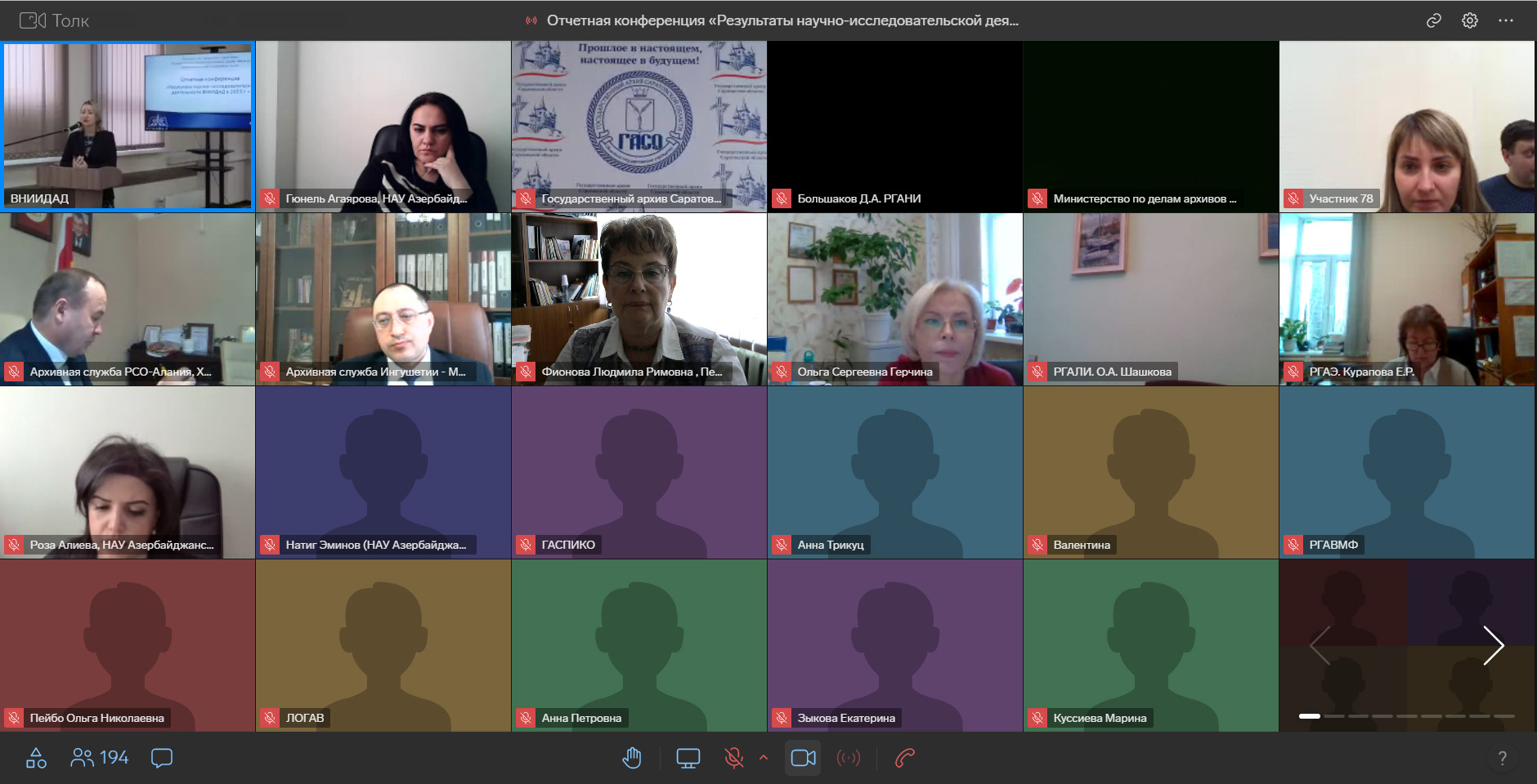 ВНИИДАД организовал конференцию в очно –заочном режиме. Участниками стали архивисты и преподаватели России и ближнего зарубежья.