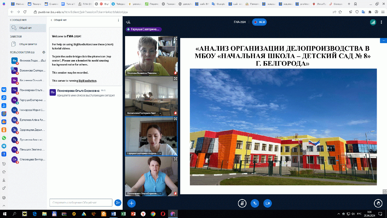 Заведующий кафедрой ИнОУП Фионова Л.Р. в очередной раз 19 и 20 июня приняла участие, в качестве председателя, в работе государственной экзаменационной комиссии в НИУ «Белгородский государственный университет». Защиту прошли 14 бакалавров в дистанционном режиме. Дистанционный режим связан с непрерывными ракетными атаками на Белгород со сторон Украины.