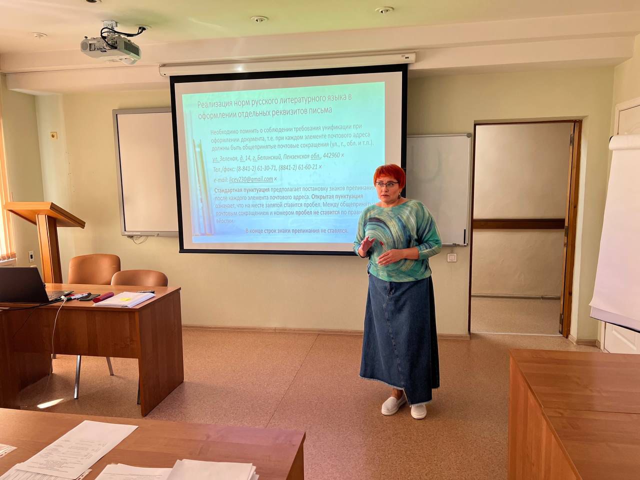 С 22 по 23 сентября 2025 г. на базе Центра переподготовки и повышения квалификации кадров Правительства Пензенской области при участии Межотраслевого регионального центра повышения квалификации и дистанционного образования ПГУ д.т.н., профессор, заведующий кафедрой ИнОУП Людмила Фионова и к.ф.н., доцент кафедры ИнОУП Ольга Семянкова провели обучение муниципальных служащих по программе «Деловое письмо.