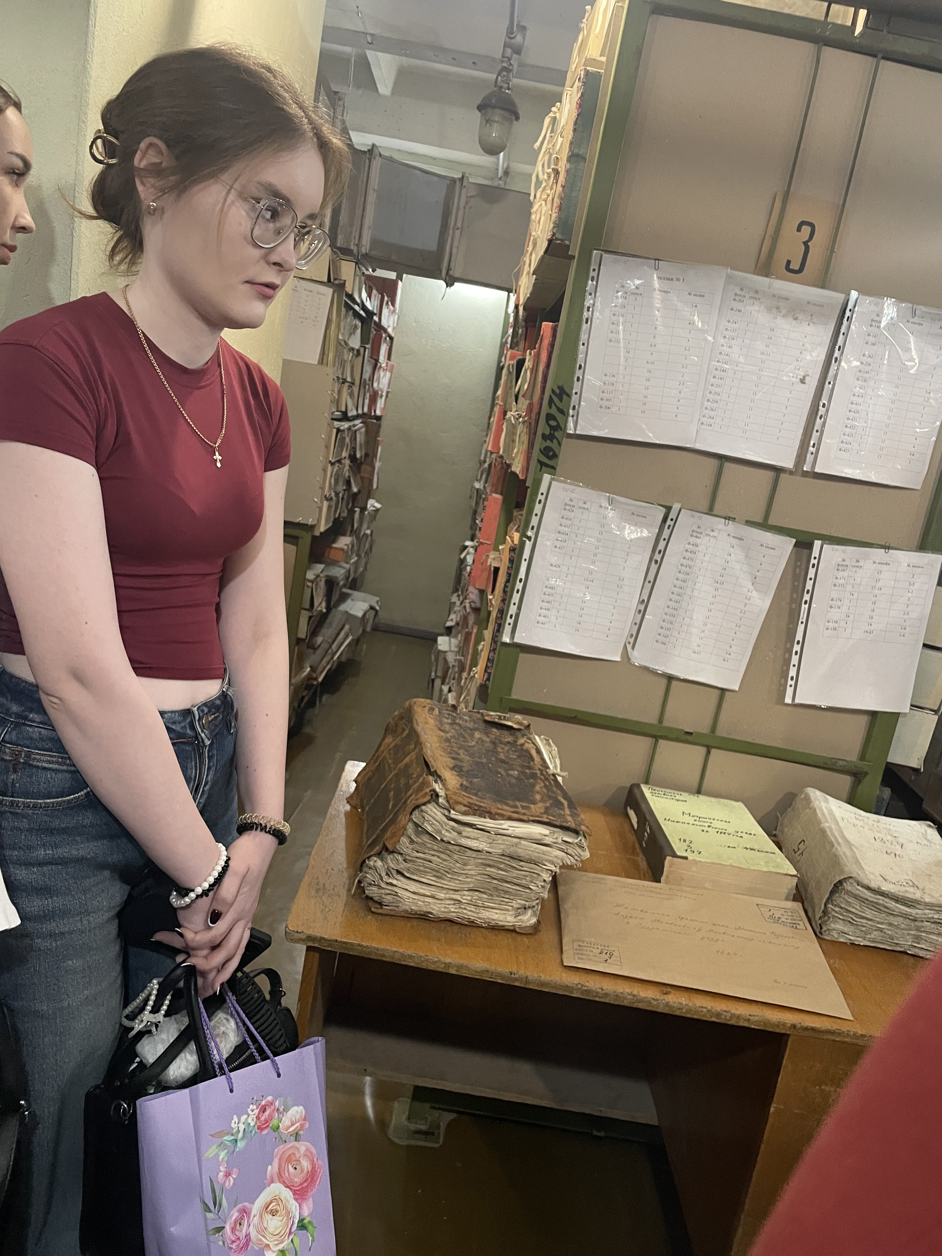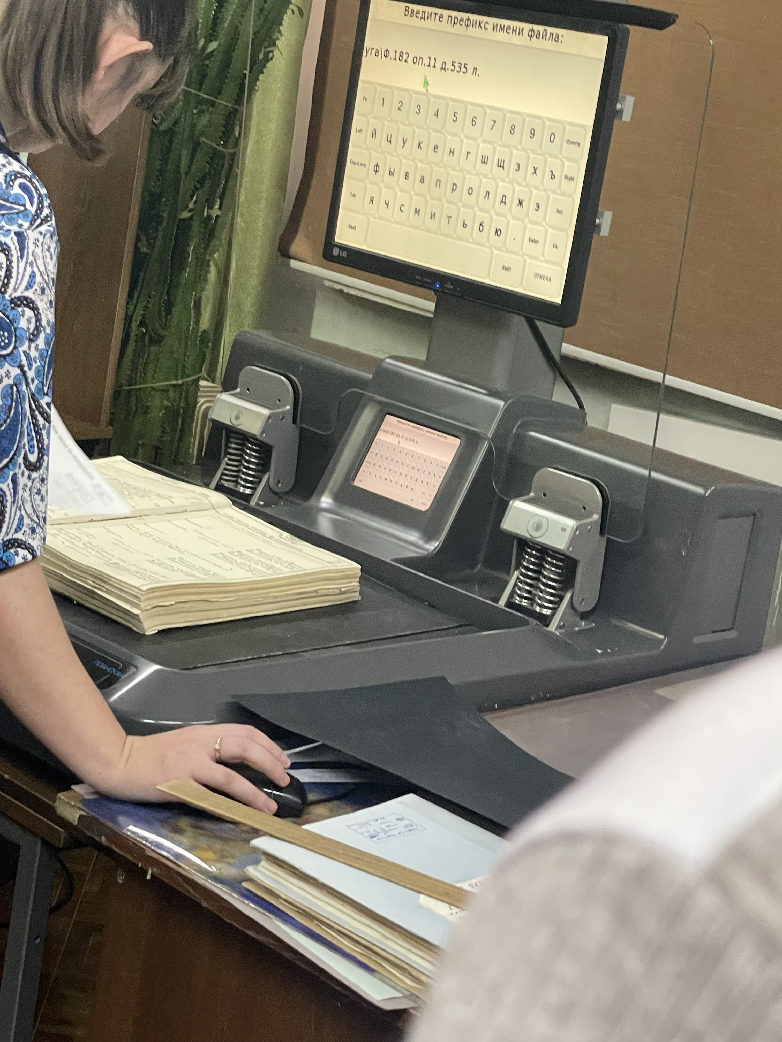«Предварительно я настроила автофокус, чтобы изображение получилось чётким. Сканер позволяет отсканировать издания толщиной не более 10 сантиметров. А в госархиве, где собрана четырёхсотлетняя история региона, встречаются и такие, толщина которых превышает 50 сантиметров. В основном, это метрические книги, их здесь свыше шести тысяч. Поэтому для сканирования изданий толщиной более 10 сантиметров приходится проявлять изобретательность», – рассказала Олеся Угаркина.